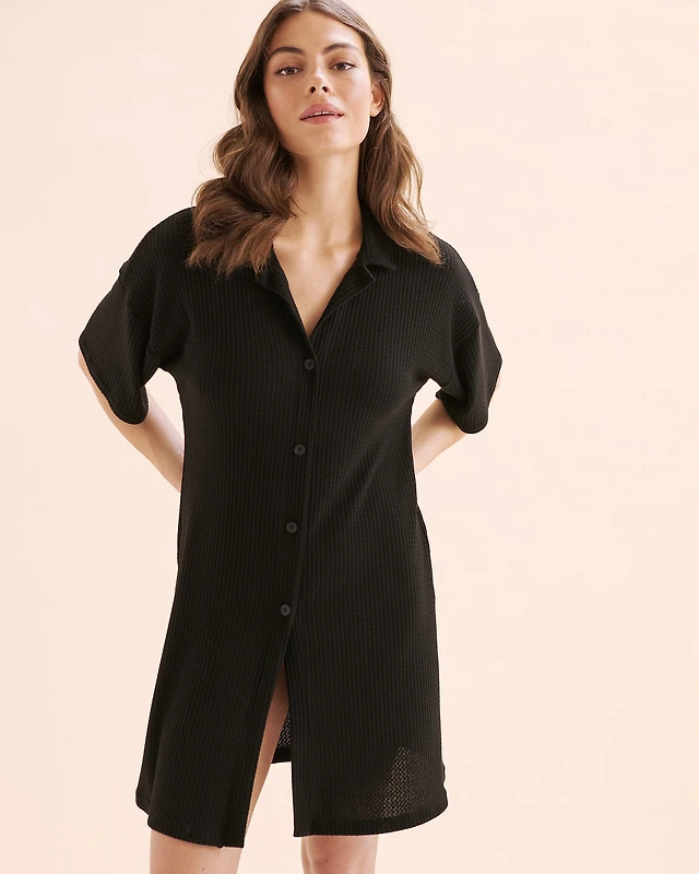 Circle Motif Stretch Cotton Shirt with Roll-Up 3/4 Sleeves & Rounded Hem by Goa