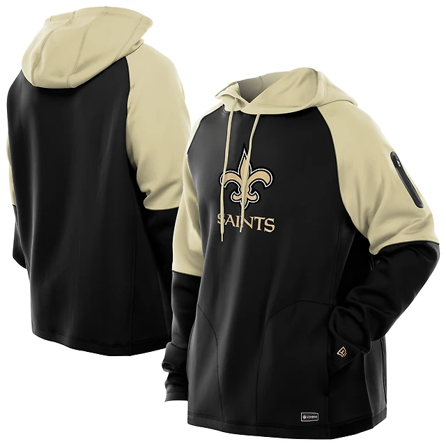 Men's New Era Black Orleans Saints Combine Authentic Color Block Raglan Pullover Hoodie