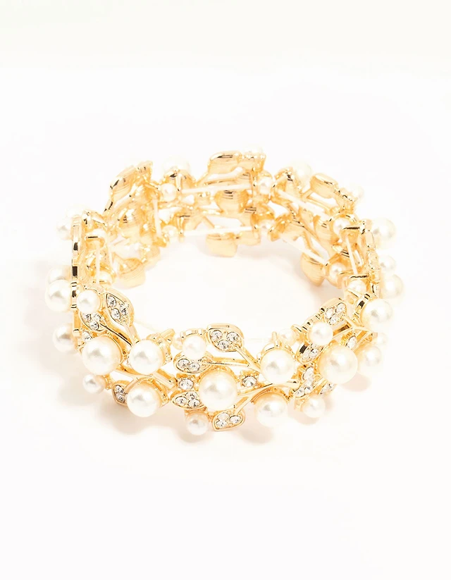 Gold Diamante Flower & Pearly Hair Vine