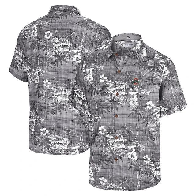 Men's Tommy Bahama Gray Ohio State Buckeyes Catch of the Day Camp IslandZone Button-Up Shirt