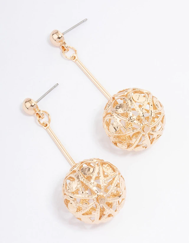 Silver Filigree Ball Thread Through Drop Earrings