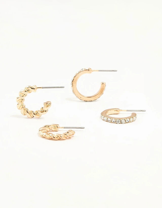 Gold Twisted & Diamante Hoop Earrings 2-Pack