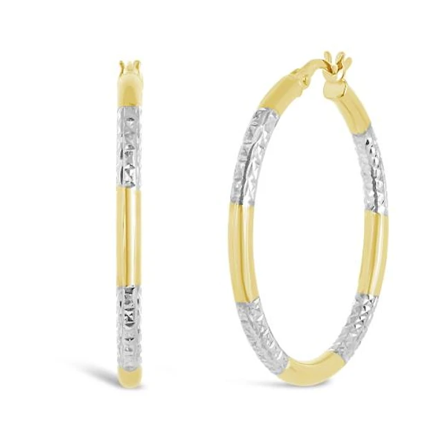 14K White Gold 15mm Diamond Cut Wedding Band Round Hoop Earrings