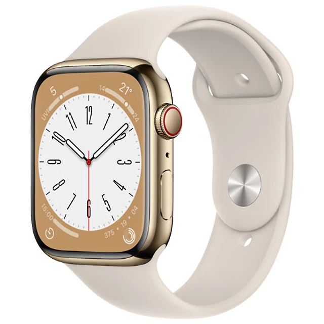 TELUS Apple Watch Series 8 (GPS + Cellular) 45mm Gold Stainless Steel Case w/ Starlight Sport Band - M/L - Monthly Financing