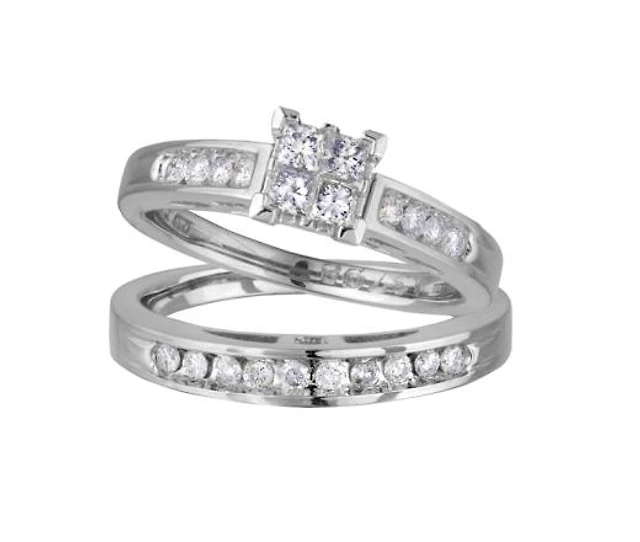 Perfect Fit 0.60 CT. T.W. Princess-Cut Diamond Frame Vintage-Style Bridal Set 10K White Gold