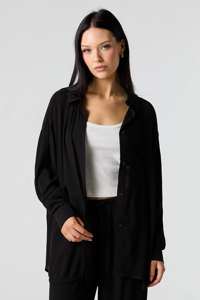 Crinkle Oversized Button-Up Top