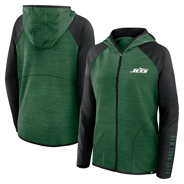 Women's Fanatics Green/Black New York Jets Redzone End Around Pass Raglan Full-Zip Hoodie