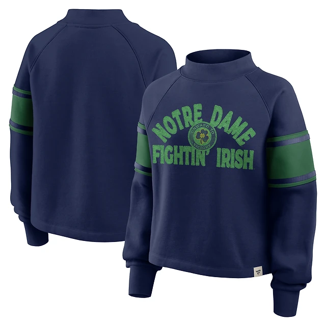 Women's Fanatics Navy Notre Dame Fighting Irish Oversized Hometown Premium Punt Coverage Raglan Pullover Sweatshirt