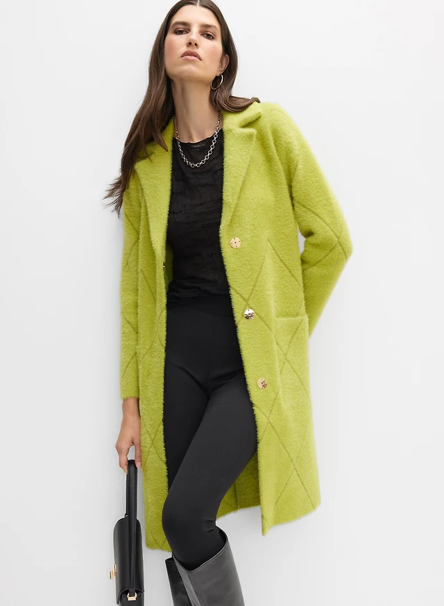 Timeless Plaid Single-Breasted Notch Lapel Knit Sweater Coat by Vince Camuto