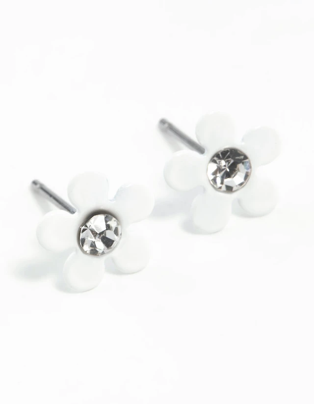 White Coated Mini 70s Dia Flower Stud Earrings
