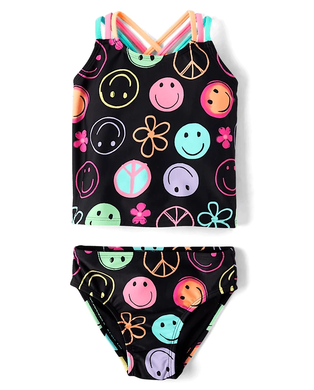 Baby And Toddler Girls Rainbow Happy Face Tankini Swimsuit
