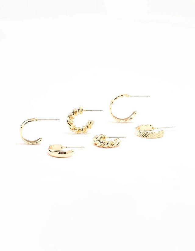 Gold Mixed Textured Hoop Earrings 3-Pack