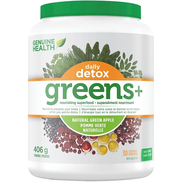 Greens+ Daily Detox, Natural Green Apple, Green Superfood Powder, Non GMO