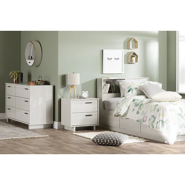 Arlen Twin Mates Bed with 3 Drawers and Headboard Set Weathered Oak by South Shore Furniture