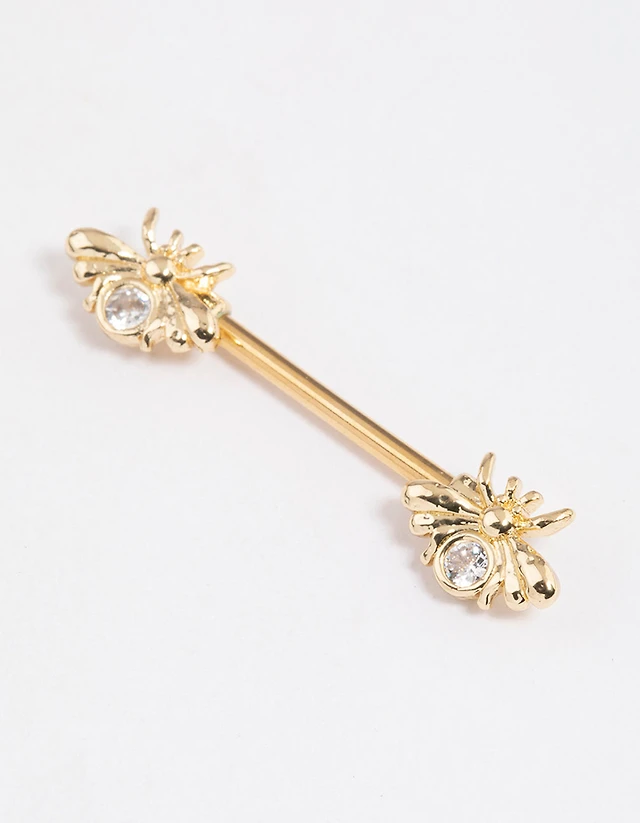Gold Plated Surgical Steel Double Bee Cubic Zirconia Flat Back Studs