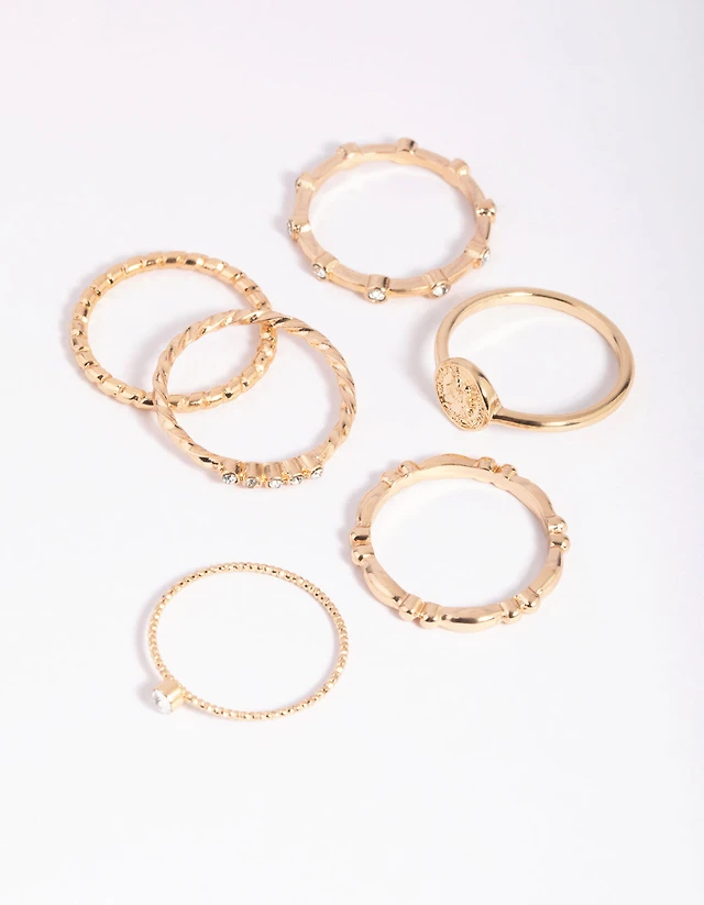 Silver Plated Cubic Zirconia Mixed Leaf Ring 5-Pack