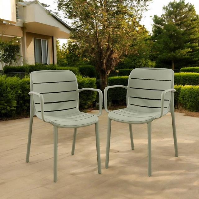 Patioflare Plus Recycled Plastic Stacking Armchairs - Green, Set of 2