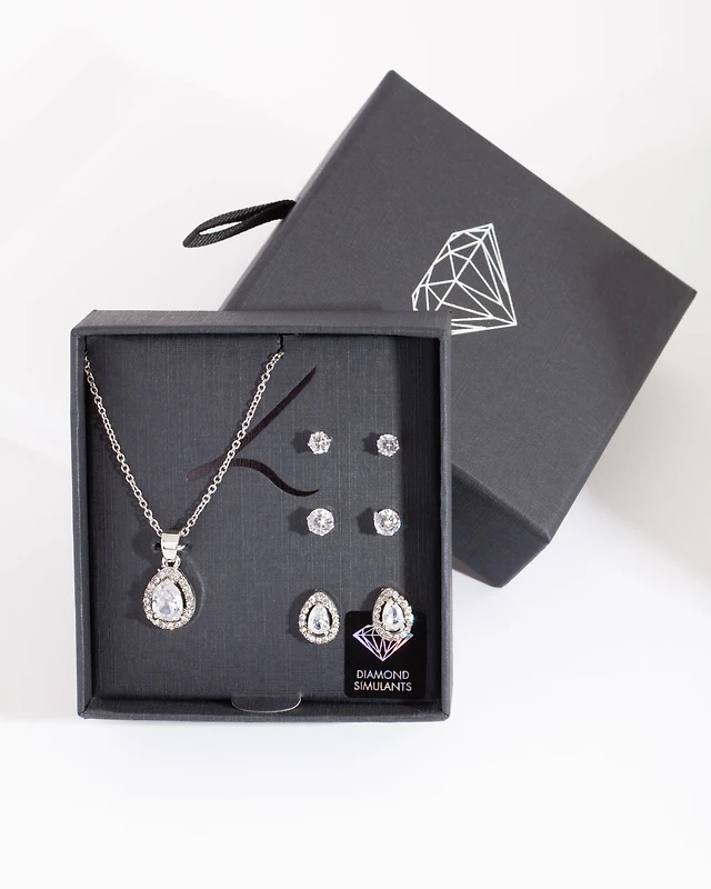 Diamond Simulant Pear Drop Earrings Necklace Set