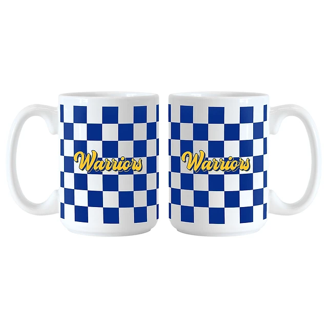 Golden State Warriors 2-Pack 15oz. Checkered Wordmark Mug Set