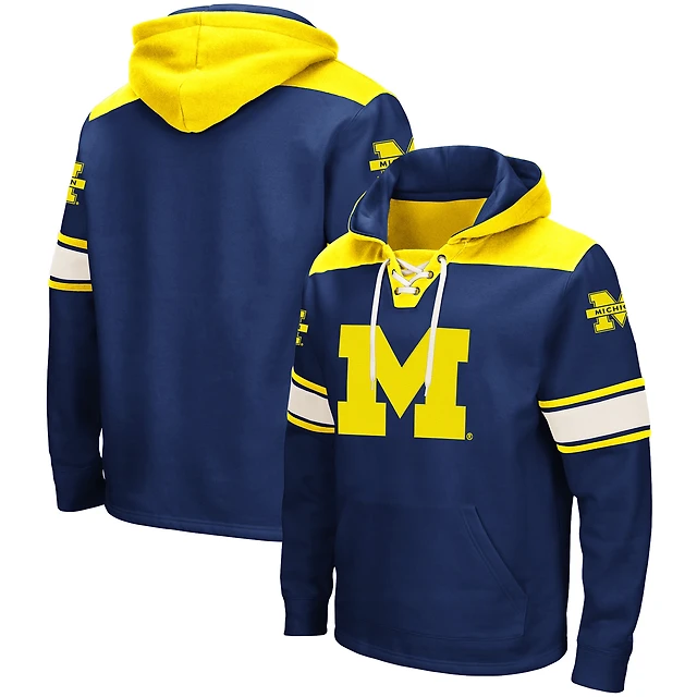 Men's Colosseum Navy Michigan Wolverines 2.0 Lace-Up Pullover Hoodie