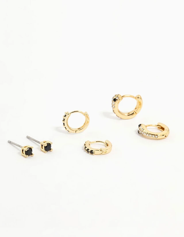 Huggie Hoop Earrings in Stainless Steel and Black Ion Plate