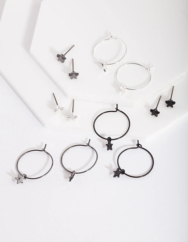 Silver Graduating Black Diamante Stud Earrings 3-Pack