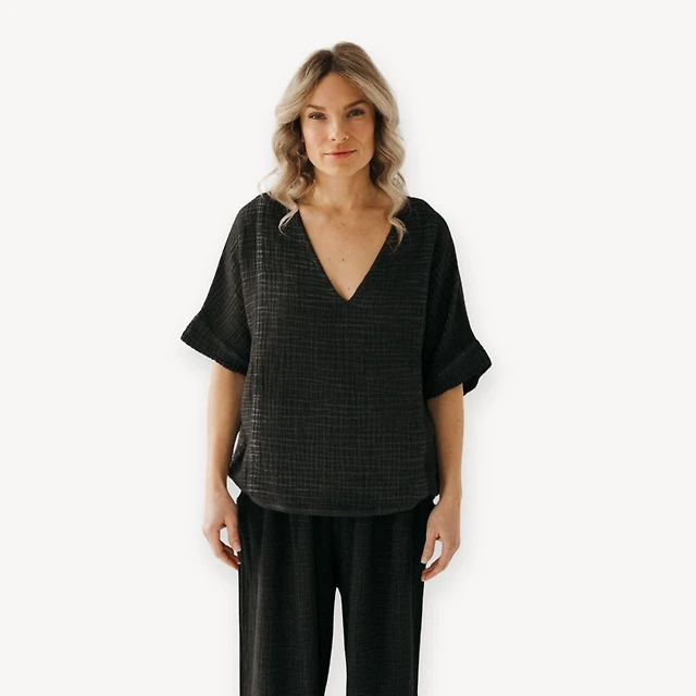 Short-Sleeve Crew-Neck Top with Cinched Waist