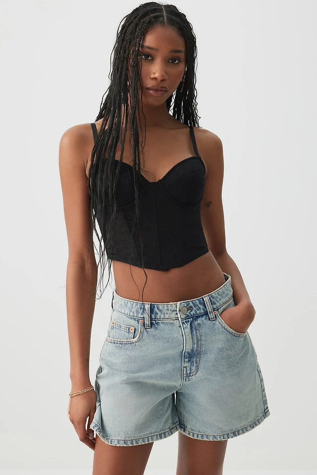Ardene Mesh & Lace Long Sleeve Bustier Top in | Size | Polyester/Elastane/Polyamide