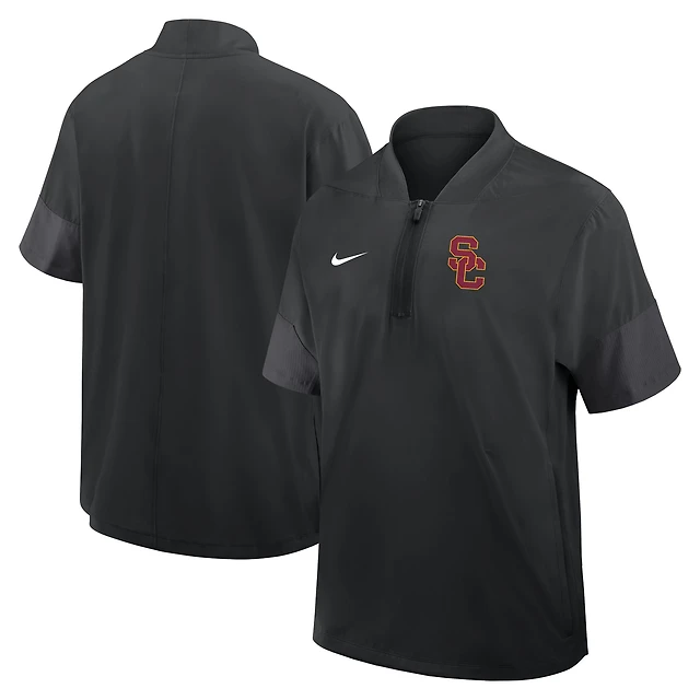 Men's Nike Black USC Trojans 2025 Sideline Short Sleeve Quarter-Zip Coach Jacket
