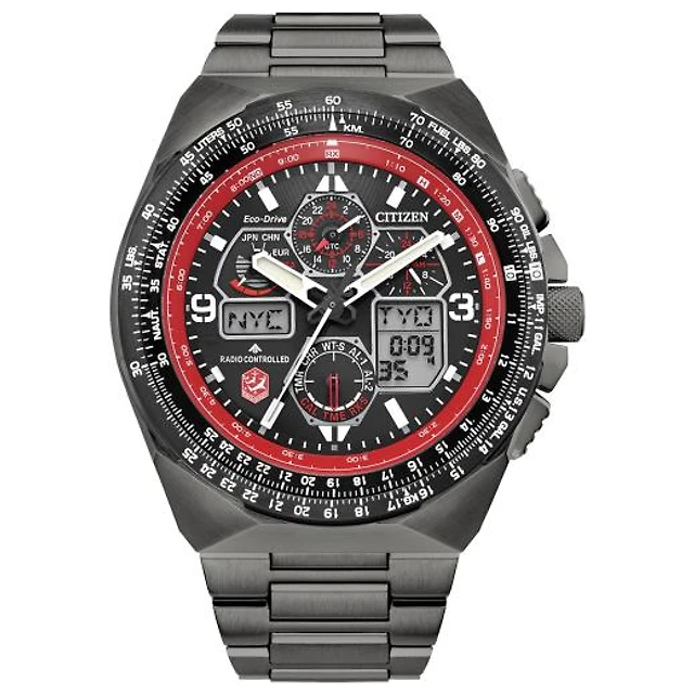 Men's Citizen Eco-Drive® Promaster Skyhawk A-T Chronograph Titanium Watch with Black Dial (Model: JY0010-50E)