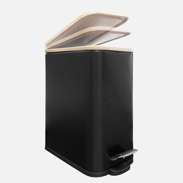 Rectangular Pedal Bin with Slim Bamboo Lid, black - 5L