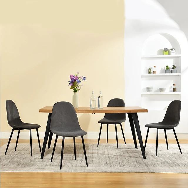 5-Piece Dining Set Manufactured Wood Table with Grey Dining Chairs