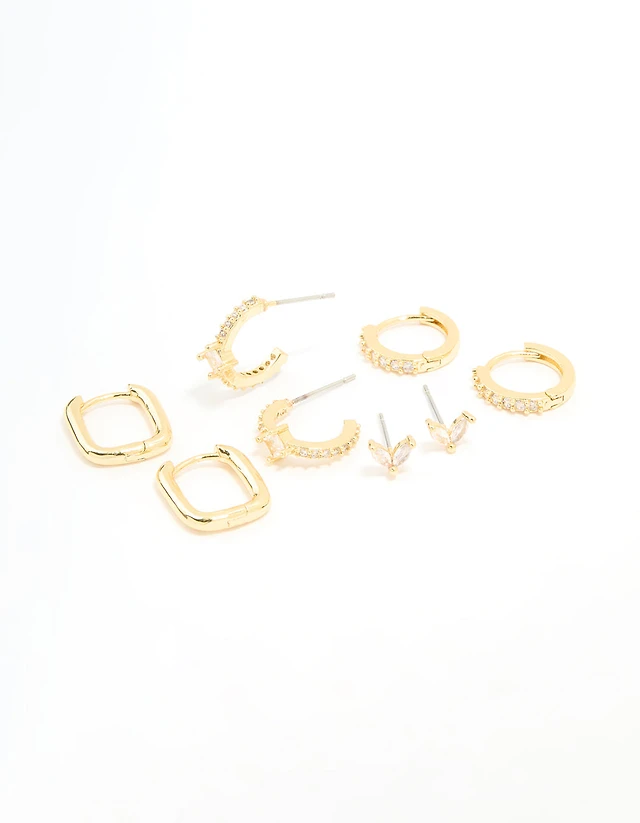 Gold Smooth & Twisted Chunky Huggie Earrings 2-Pack