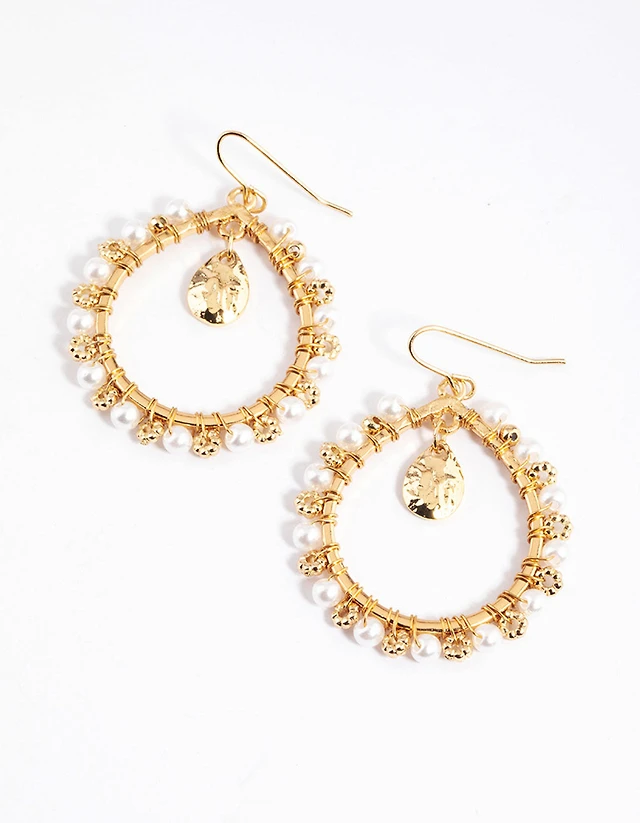 Gold Plated Freshwater Pearl Huggie Hoop Earrings