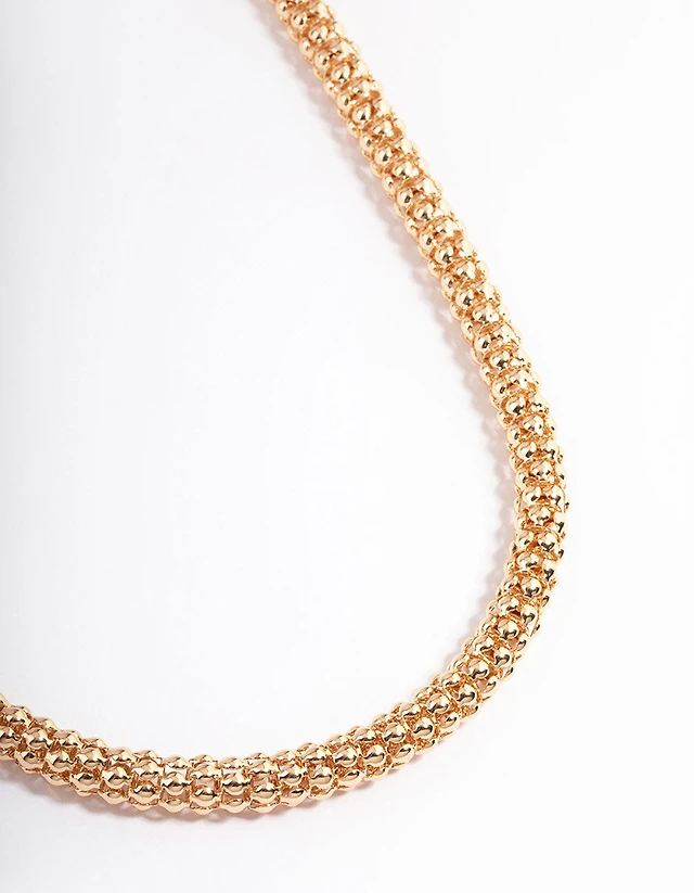 Gold Three Row Mixed Disc & Facet Bead Necklace