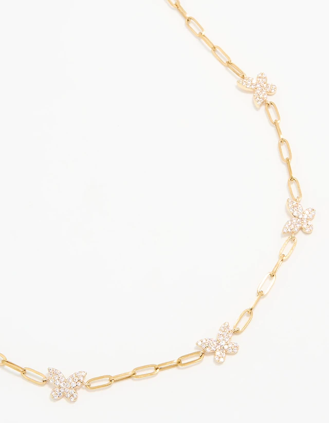 Gold Plated Cubic Zirconia Dainty Chain Drop Necklace