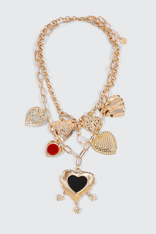 Ardene 2-Row Necklace with Heart Cross Pendant in Silver