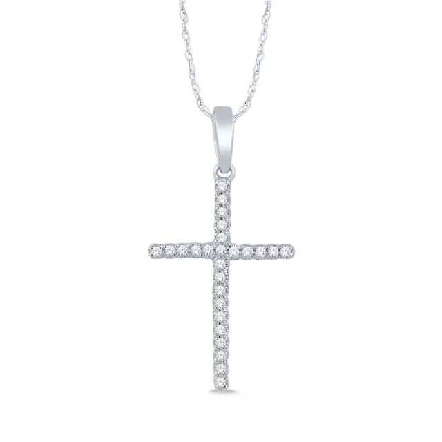 Rhodium Diamond Simulant Stud & Cross Necklace Set