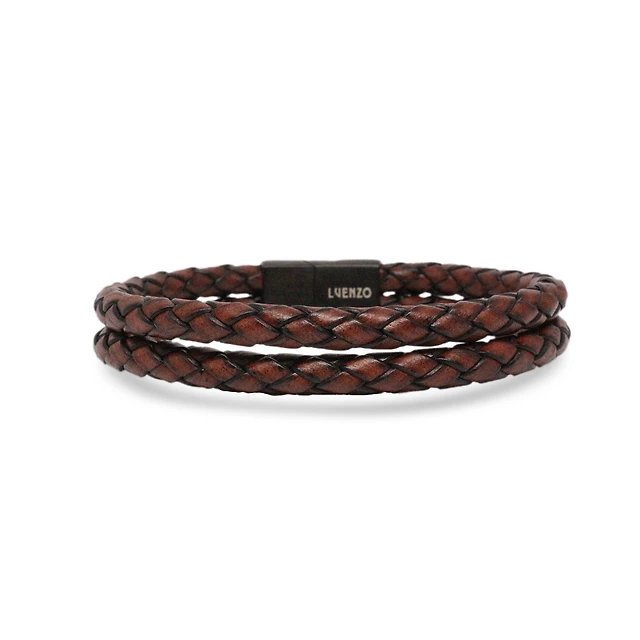 Luenzo Cognac Brown Genuine Leather Double Wrap Bracelet
