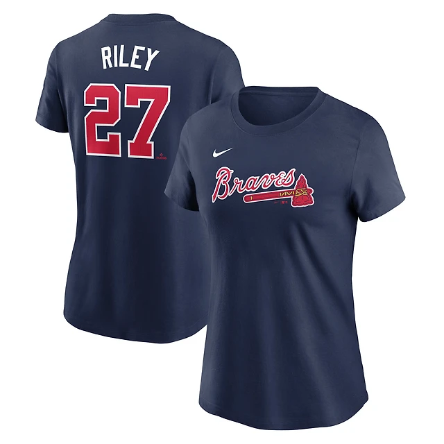 Women's Nike Austin Riley Navy Atlanta Braves Cooperstown Collection Fuse Name & Number T-Shirt