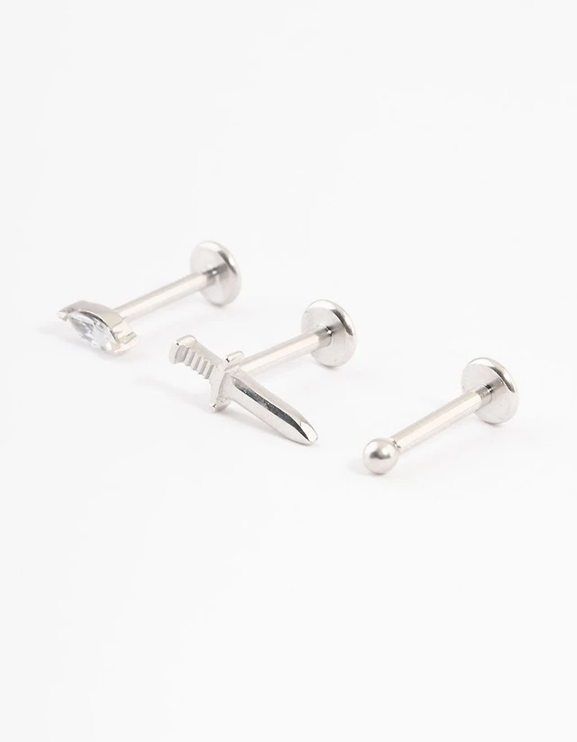 Silver Surgical Steel Lightning Bolt Flat Back Earring Pack