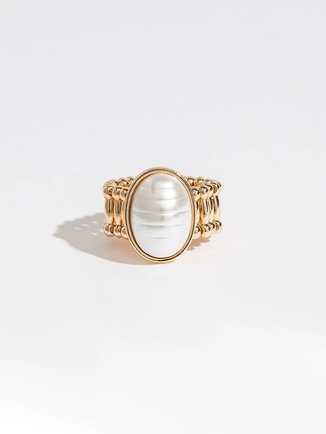 Ardene 6-Pack of Pearl & Stone Rings in Gold | Size Small