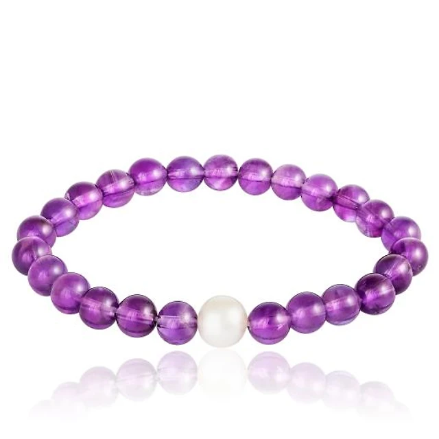 Amethyst and Freshwater Pearl Stretch Bracelet