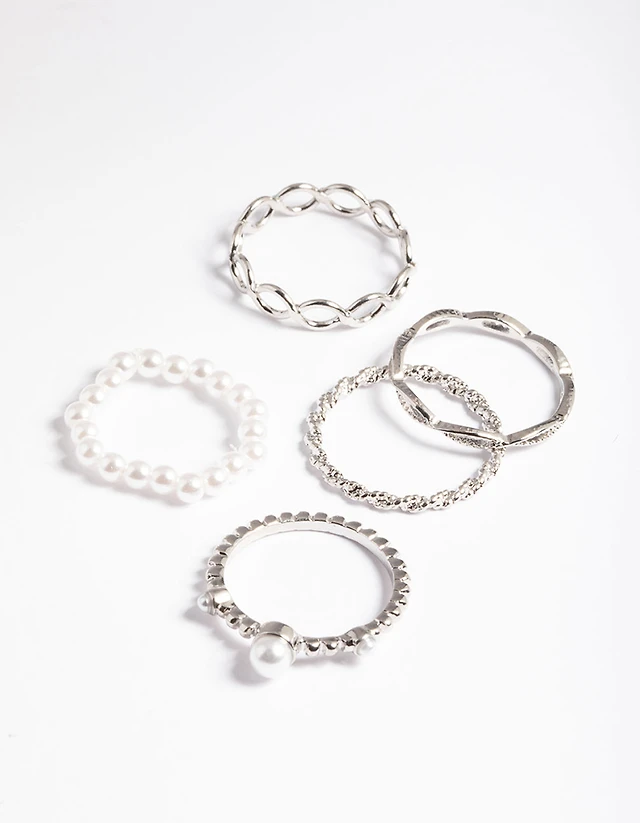 Silver Pearl & Twist Ring 5-Pack