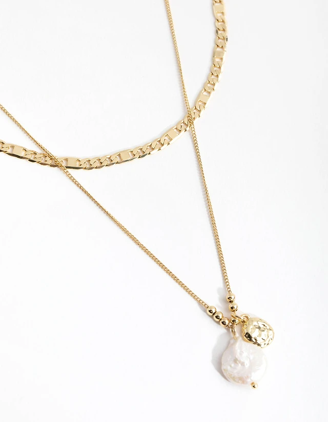 Gold Pearl & Butterfly Diamante Pendant Necklace