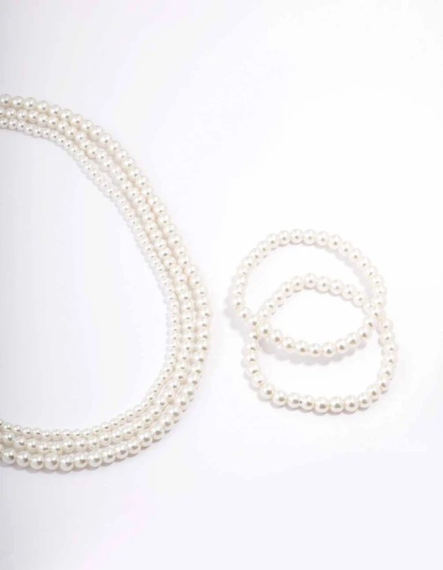 IMPERIAL® Freshwater Cultured Pearl and Crystal Bead Station Necklace, Bracelet and Drop Earrings Set in Sterling Silver