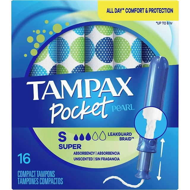 Pocket Pearl Tampons Super Absorbency with LeakGuard Braid, Unscented