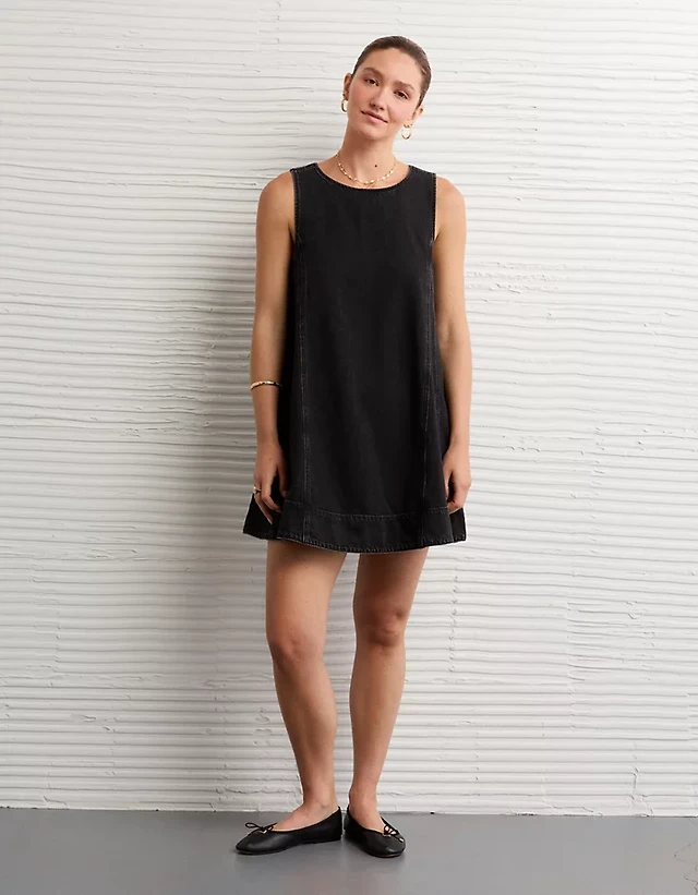 AE V-Neck Denim Striped Mini Shift Dress