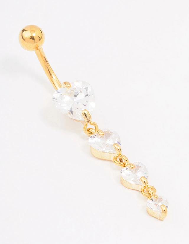 Gold Plated Surgical Steel Cubic Zirconia Heart Threadless Belly Bar