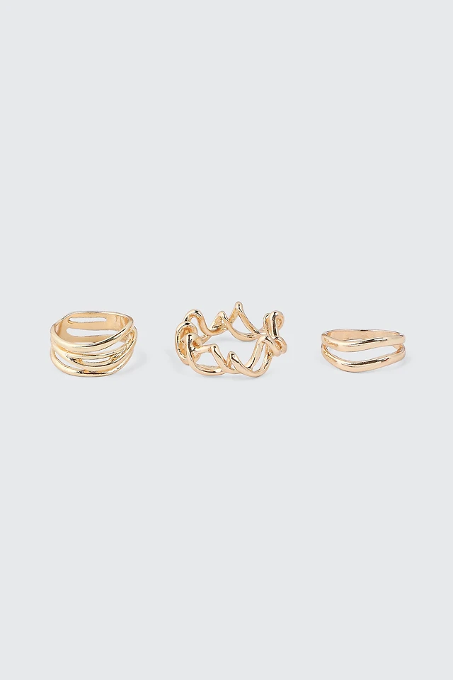Ardene 3-Pack Wire Effect Rings in Gold | Size